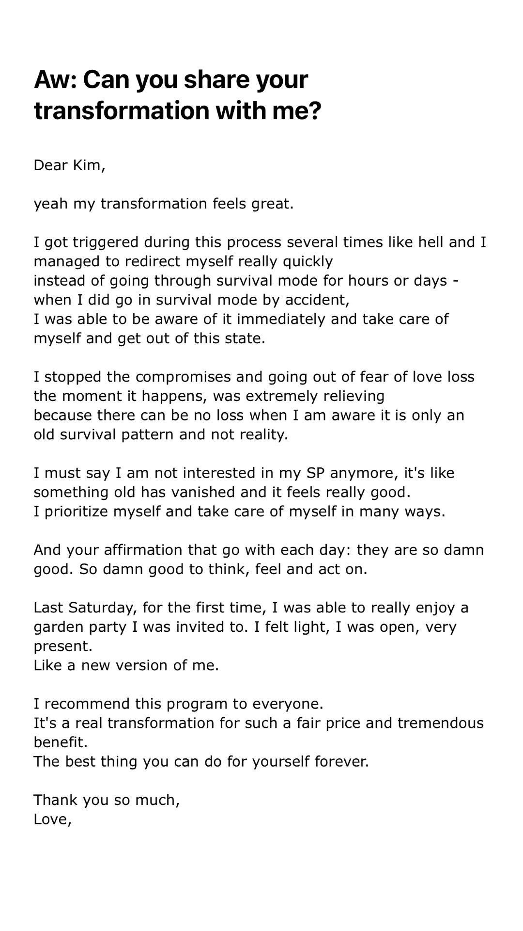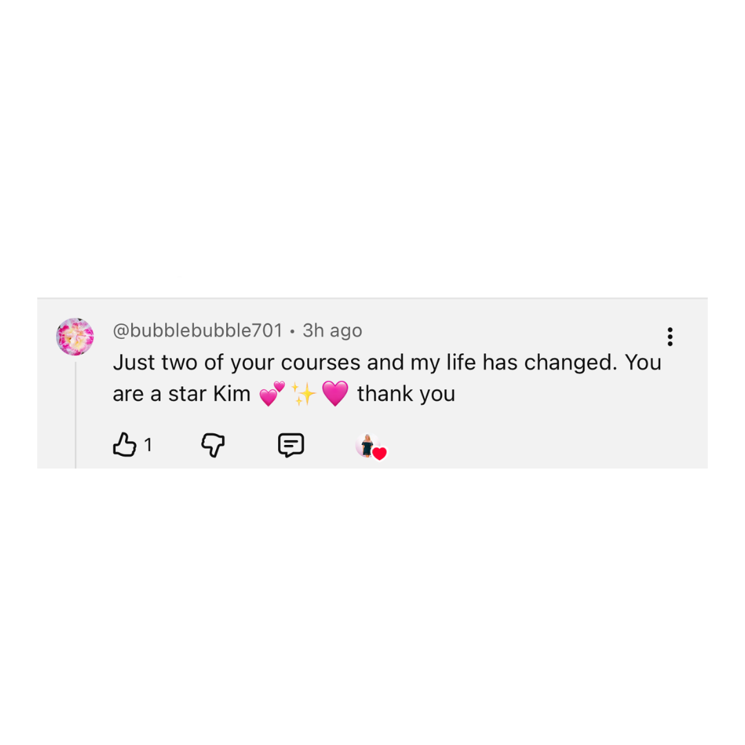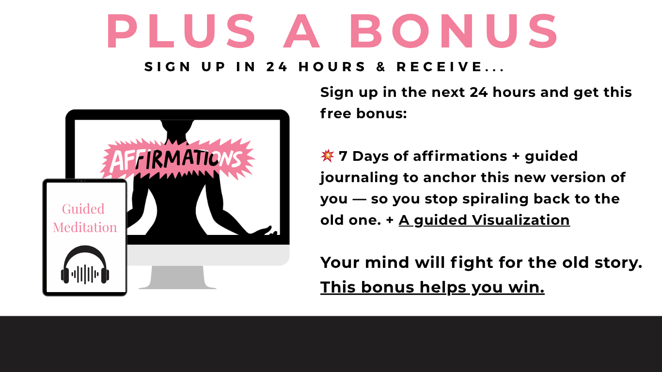 This bonus includes Kim’s powerful teaching on identity through the eyes of God — whether or not you’re faith-based, it will give you the clarity and relief you’ve been missing.