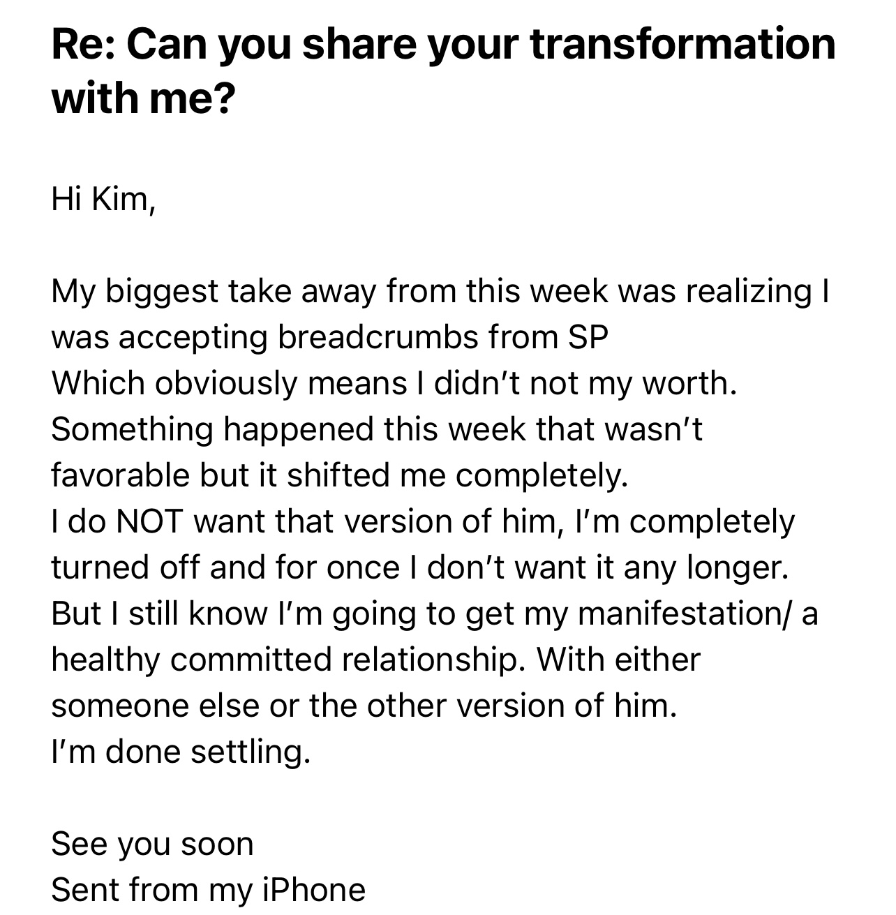 ✔ Watch the replay of Kim’s sold-out coaching call — the exact session where women stopped settling and started owning their worth (This call alone is worth more than the $67 you’ll pay today.)