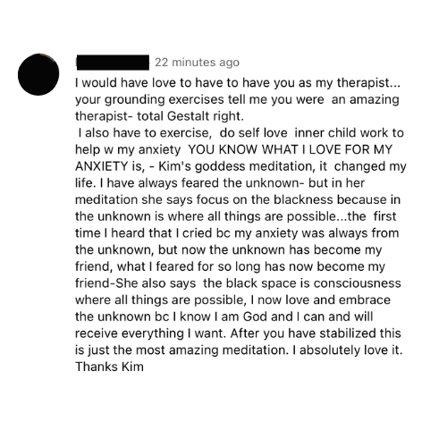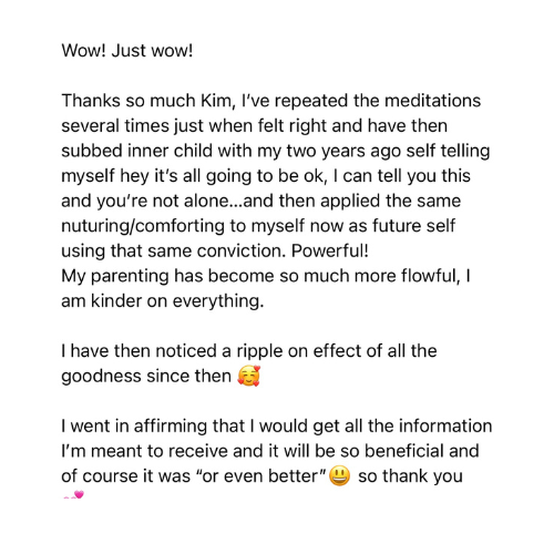 “This course has been life-changing. I finally feel like I can let go of the pain I’ve been holding onto for years. I never thought I could feel this light, free, and connected to myself again. Thank you, Kim!” – Jessica