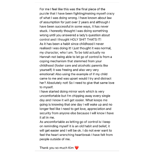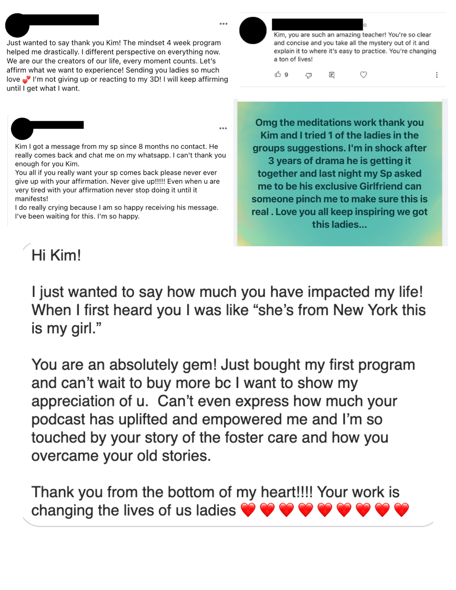 “This isn’t your typical surface-level self-help program. Kim’s process goes so deep, and I’ve never felt this free from insecurities that used to define me—especially in my relationships.” – Jasmine