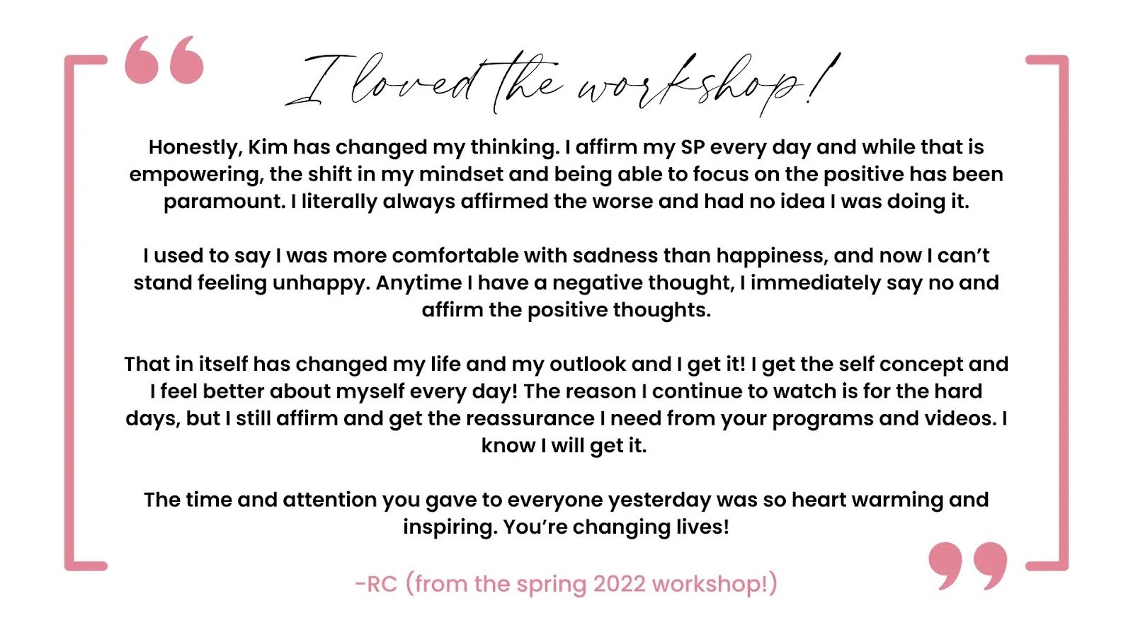 I’ve watched women go from feeling desperate and insecure to manifesting the love, commitment, and devotion they thought was impossible, (including me).