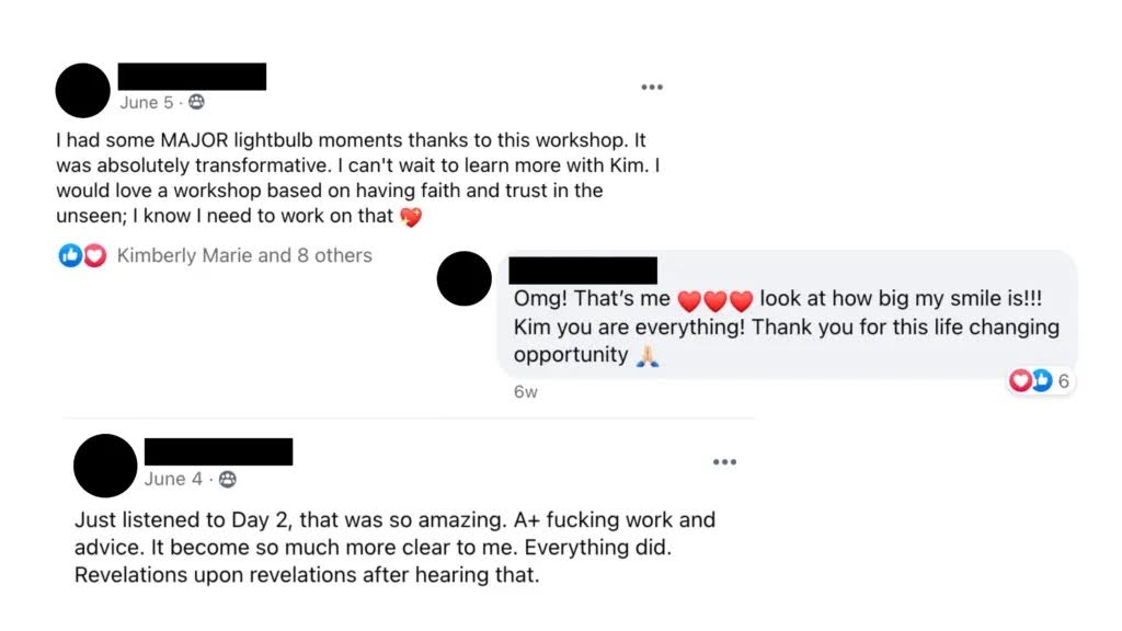 ✨ Live coaching replays where you get to witness real transformations and breakthroughs. It’s like sitting front-row at a private coaching session.